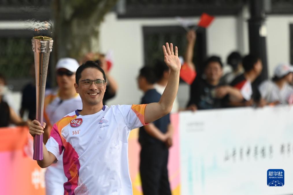 9月8日,火炬手浦世亮在火炬傳遞中。