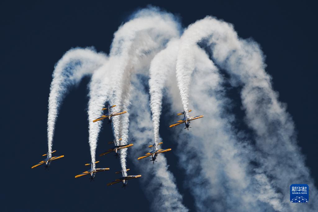 9月7日,飛機在巴西首都巴西利亞舉行的獨立日慶?;顒?dòng)上表演。