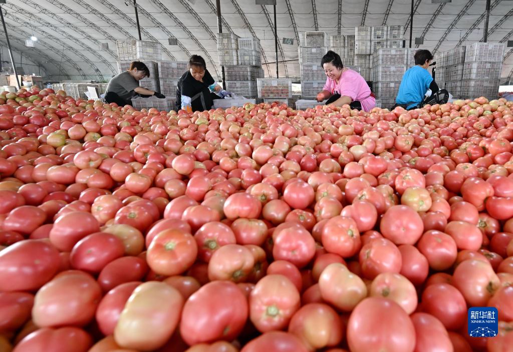 9月8日,河北省灤州市小馬莊鎮一家蔬菜種植合作社的社員在分揀收獲的西紅柿。