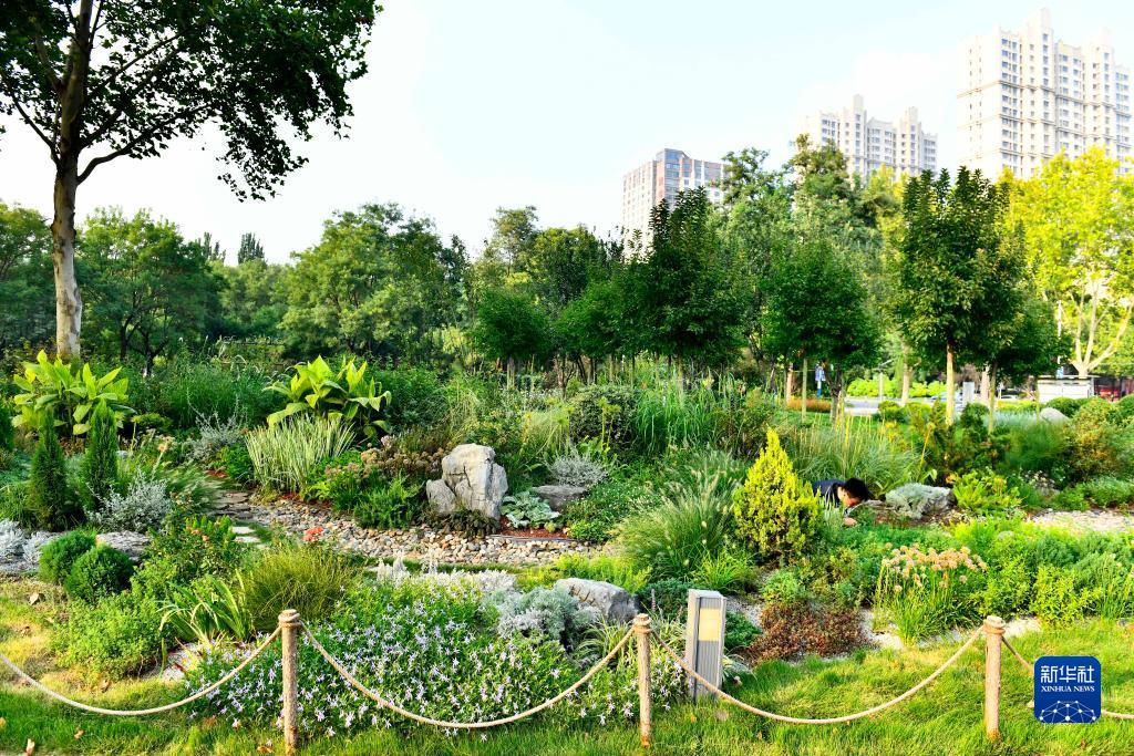 這是9月7日拍攝的德州市行政中心綠地花園。