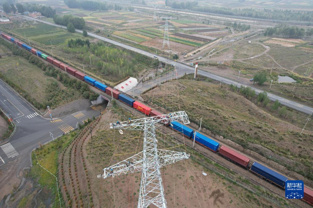 這是9月8日在武威市天??h境內拍攝的蘭新(張)三四線(xiàn)甘肅牽引站330千伏外部供電工程施工現場(chǎng)(無(wú)人機照片)。