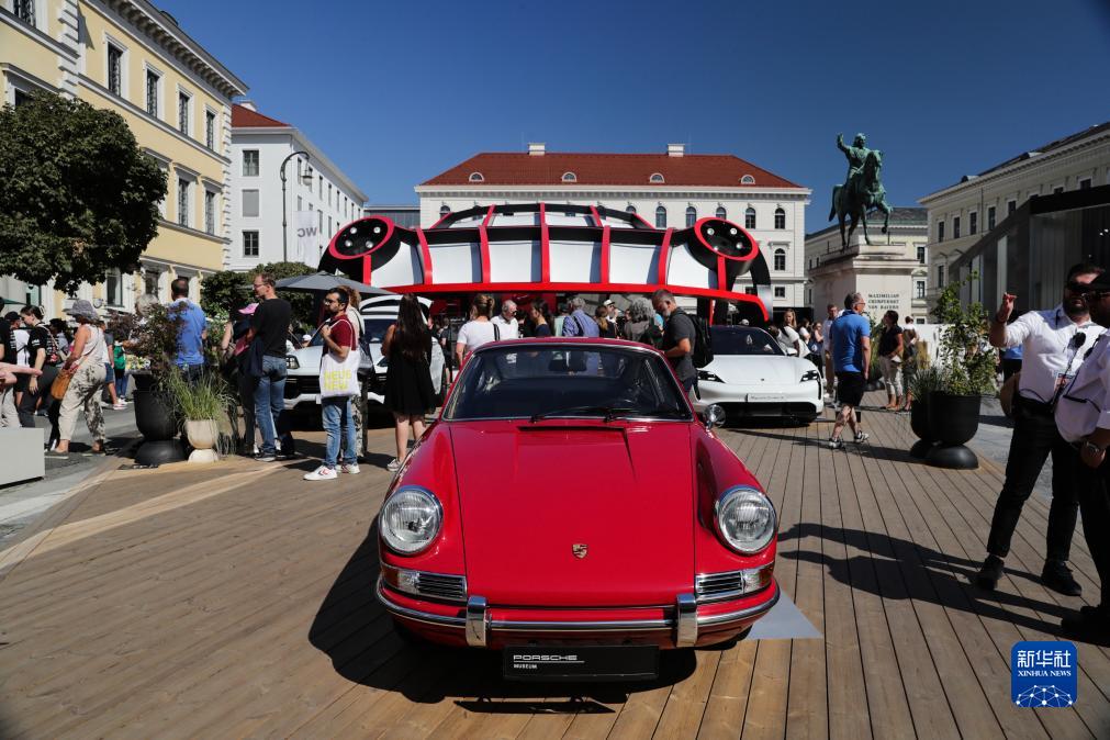 9月8日,人們在德國慕尼黑國際車(chē)展城市公共展示區的保時(shí)捷展區參觀(guān)。