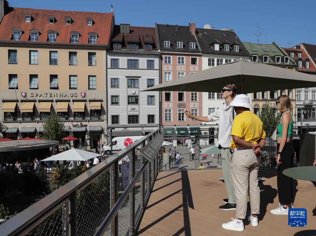 9月8日,一名參觀(guān)者在德國慕尼黑國際車(chē)展城市公共展示區體驗AR看車(chē)。