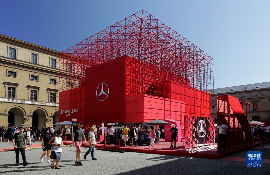 9月8日,人們在德國慕尼黑國際車(chē)展城市公共展示區的奔馳展區參觀(guān)。