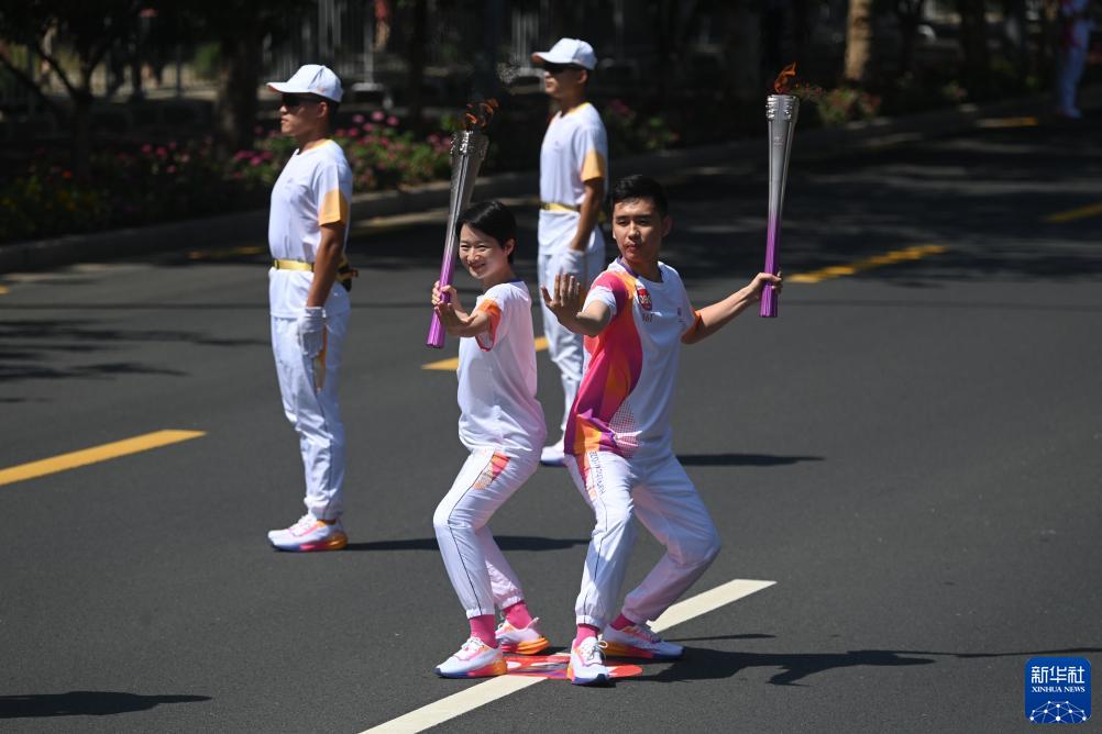 9月9日,火炬手韓可(右)和吳靜鈺在火炬傳遞中。