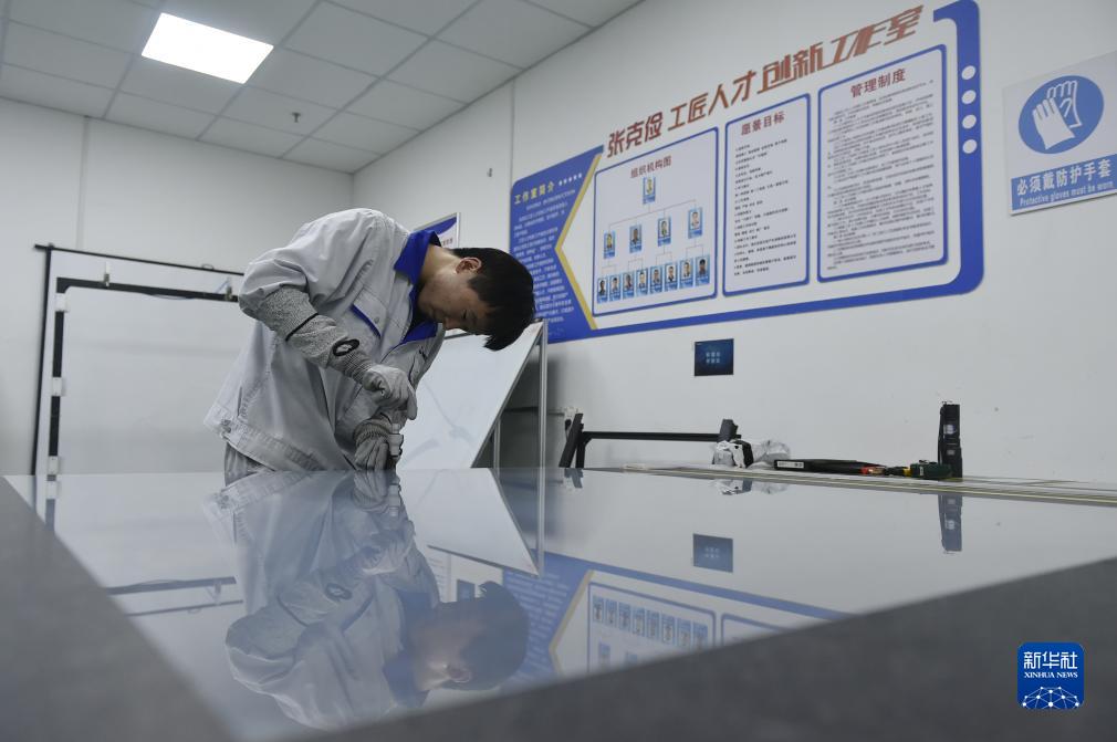 9月7日,河南省安陽(yáng)市安陽(yáng)縣一家光電科技企業(yè)的工作人員在檢測產(chǎn)品質(zhì)量。