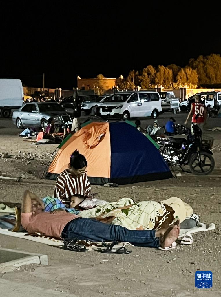 9月9日凌晨,在距離震中200多公里的摩洛哥瓦爾扎扎特市,居民來(lái)到戶(hù)外避險(手機照片)。