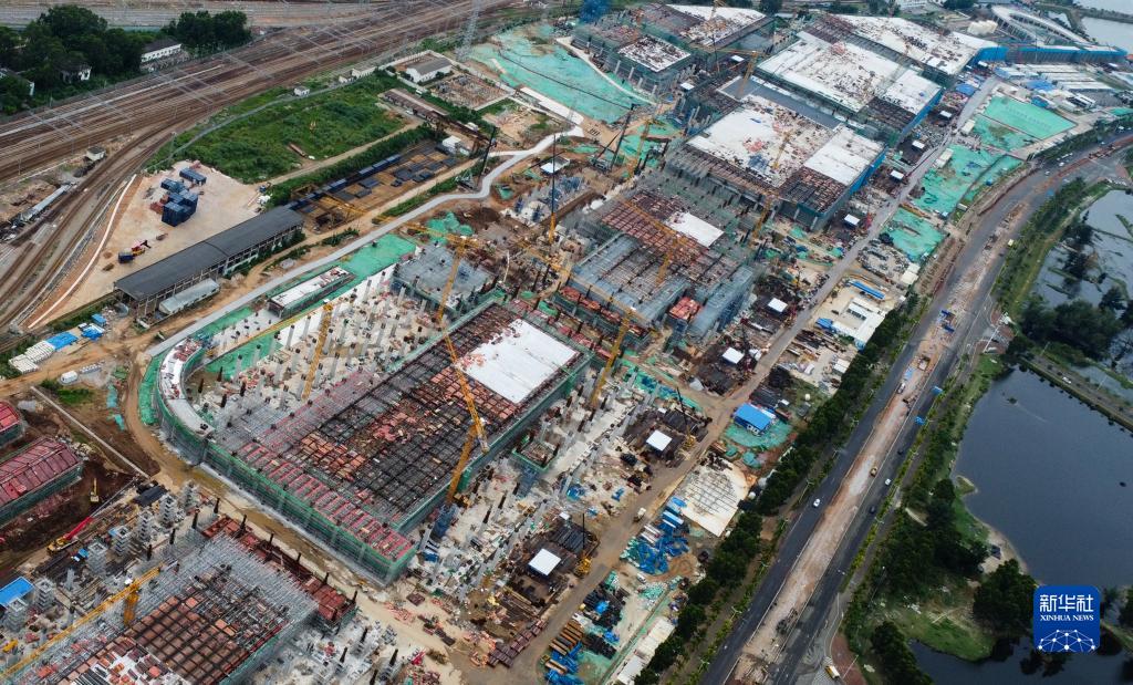 這是9月9日拍攝的??谛潞8酆湍细邸岸€(xiàn)口岸”(貨運)集中查驗場(chǎng)所建設項目(無(wú)人機照片)。