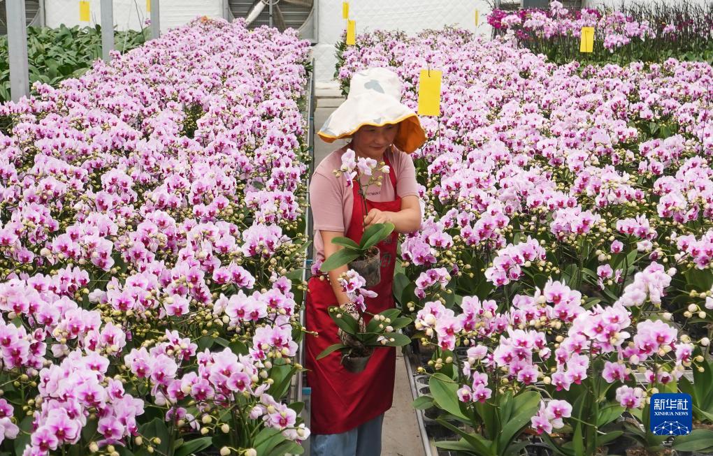 9月9日,農戶(hù)在宿遷市王官集鎮蝴蝶蘭大世界大棚內忙碌。