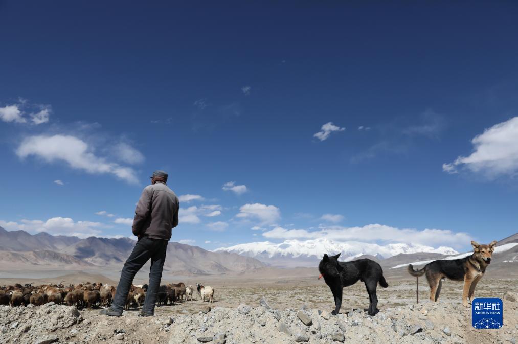 在“冰川之父”慕士塔格峰腳下,新疆塔什庫爾干塔吉克自治縣塔合曼鄉境內的一片天然草場(chǎng)吸引周邊鄉村的牧羊人在此放牧。進(jìn)入秋季以來(lái),草場(chǎng)漸漸泛黃,屹立于遠處的慕士塔格峰和公格爾九別峰在藍天白云的映襯下格外壯美,一幅寧靜悠遠的牧羊圖引人入勝。