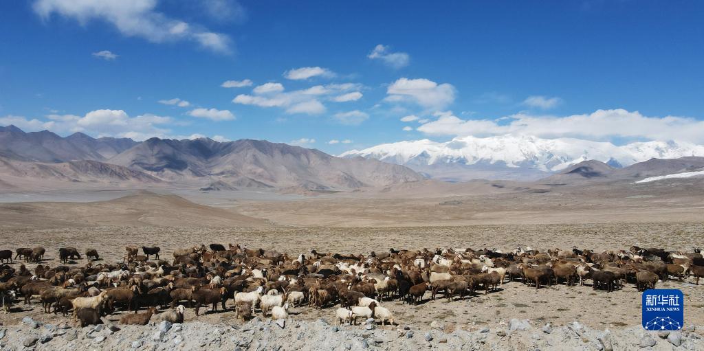 在“冰川之父”慕士塔格峰腳下,新疆塔什庫爾干塔吉克自治縣塔合曼鄉境內的一片天然草場(chǎng)吸引周邊鄉村的牧羊人在此放牧。進(jìn)入秋季以來(lái),草場(chǎng)漸漸泛黃,屹立于遠處的慕士塔格峰和公格爾九別峰在藍天白云的映襯下格外壯美,一幅寧靜悠遠的牧羊圖引人入勝。