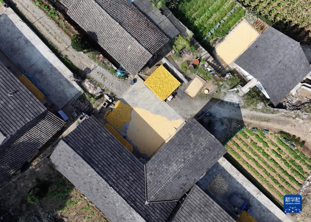 初秋時(shí)節,湖北省宜昌市秭歸縣九畹溪鎮的村民將收獲的玉米、辣椒等農產(chǎn)品晾曬在房前屋后,勾勒出一幅幅山村“曬秋”圖。