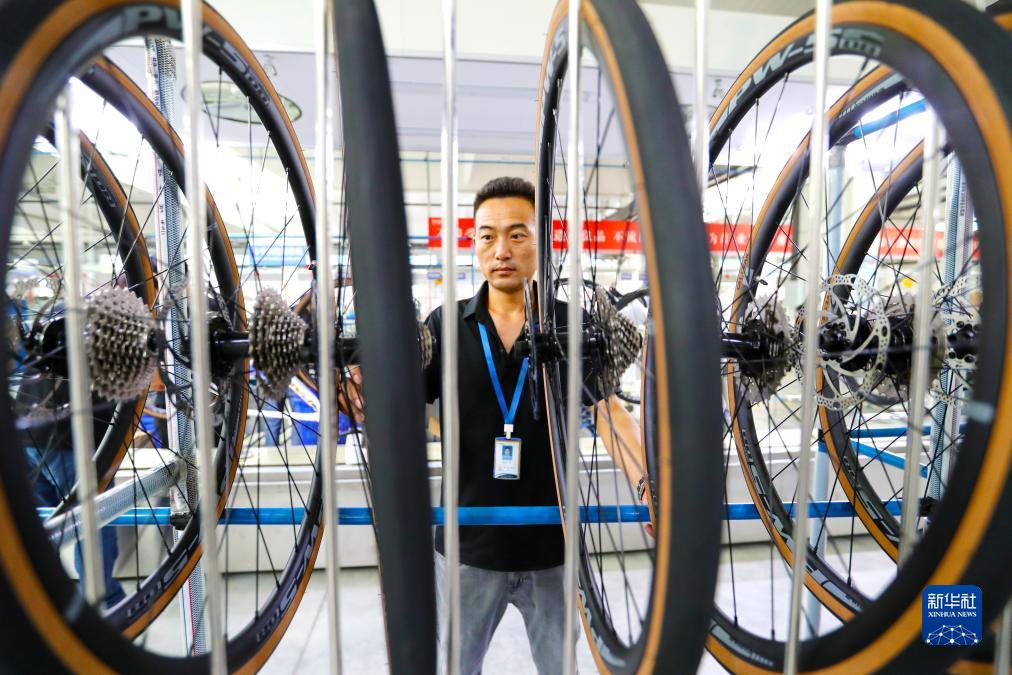 9月9日,在山東樂(lè )陵市一家企業(yè)的碳纖維自行車(chē)生產(chǎn)車(chē)間,工人在組裝線(xiàn)備料。新華社發(fā)(張進(jìn)剛 攝)