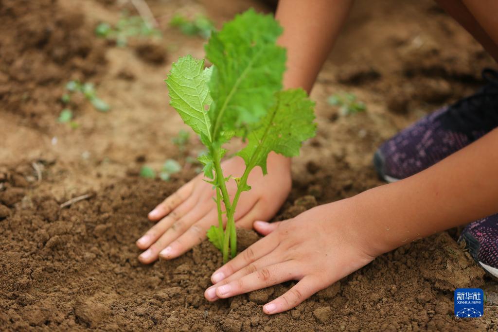 9月9日,在山東省樂(lè )陵市朱集中心小學(xué)勞動(dòng)實(shí)踐基地,學(xué)生在田里勞作。新華社發(fā)(李志軍 攝)
