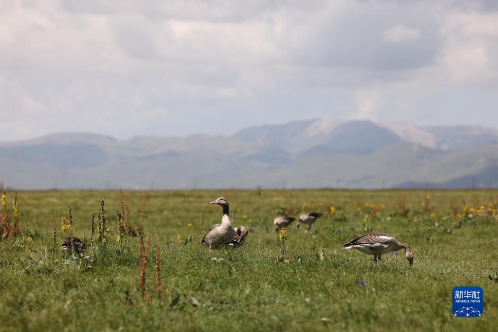 這是8月22日在四川省阿壩藏族羌族自治州若爾蓋縣花湖拍攝的灰雁。