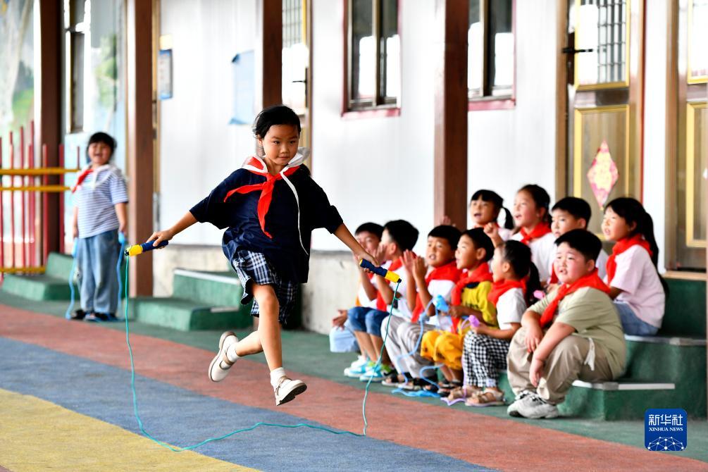 9月5日,在微山縣高樓鄉渭河小學(xué),孩子們在課間做游戲。
