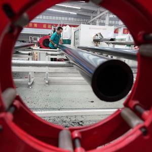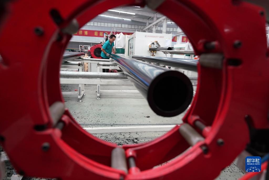 9月10日,河北省柏鄉縣一家管材生產(chǎn)科技型企業(yè)的工人在生產(chǎn)線(xiàn)上工作。