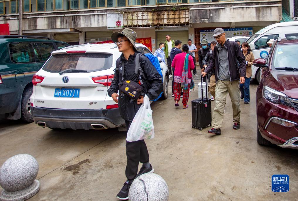 幾名游客準備從樟木口岸出境到尼泊爾旅游(9月9日攝)。