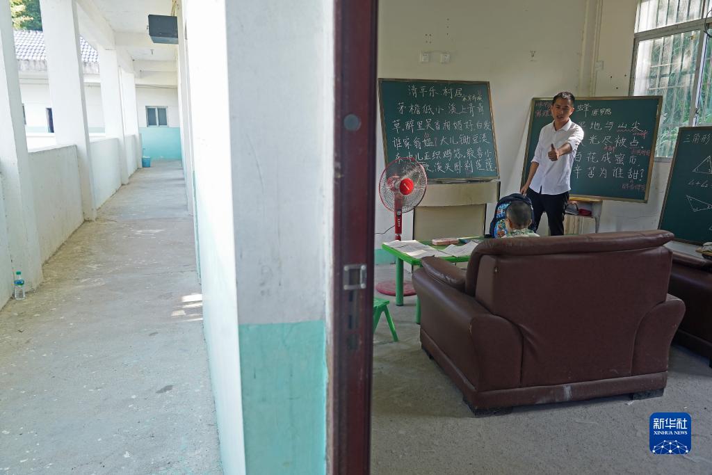 在江西省高安市華林山鎮中心小學(xué)朱家教學(xué)點(diǎn),李新江(右)在給小澤上語(yǔ)文課(9月4日攝)。