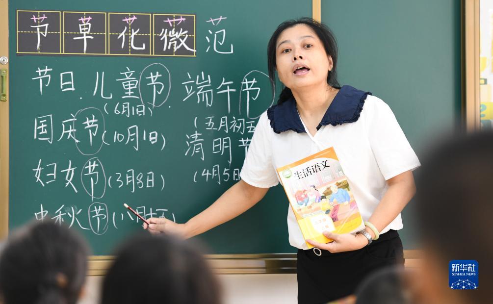 在海南(??冢┨厥饨逃龑W(xué)校啟智三(1)班,班主任符堯惠為學(xué)生們上課(9月6日攝)。