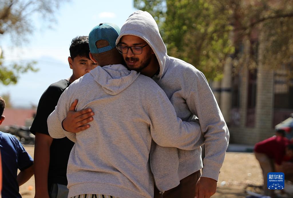 這是9月10日在摩洛哥震中附近的艾米茲米茲村一處臨時(shí)安置點(diǎn)拍攝的受災群眾。