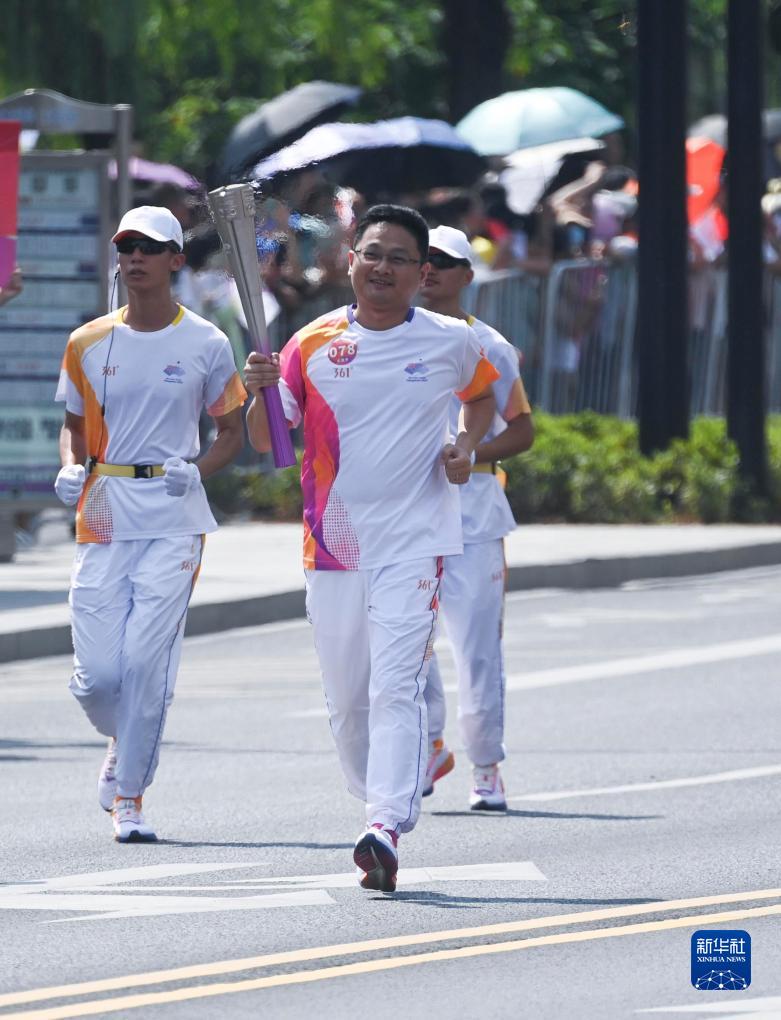 9月11日,火炬手俞劍鑫在火炬傳遞中。