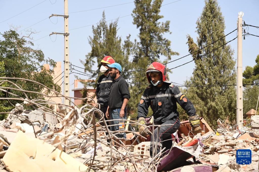 9月10日,在摩洛哥震中附近的艾茲魯村,救援人員實(shí)施搜救。