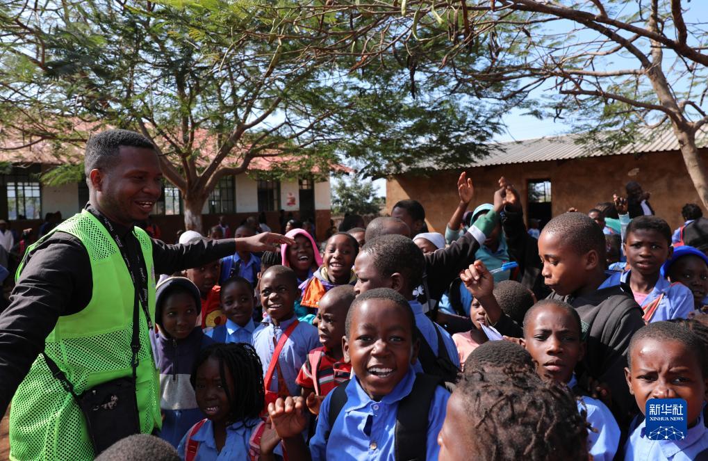 7月26日,在莫桑比克馬普托省戈巴村學(xué)校,瓜達吉亞與學(xué)生互動(dòng)。