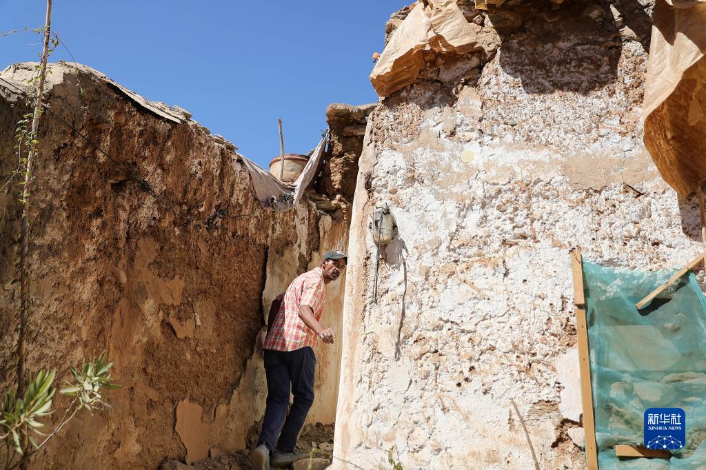 9月10日,在摩洛哥震中附近的艾米茲米茲村,一名男子查看自家損毀的房屋。