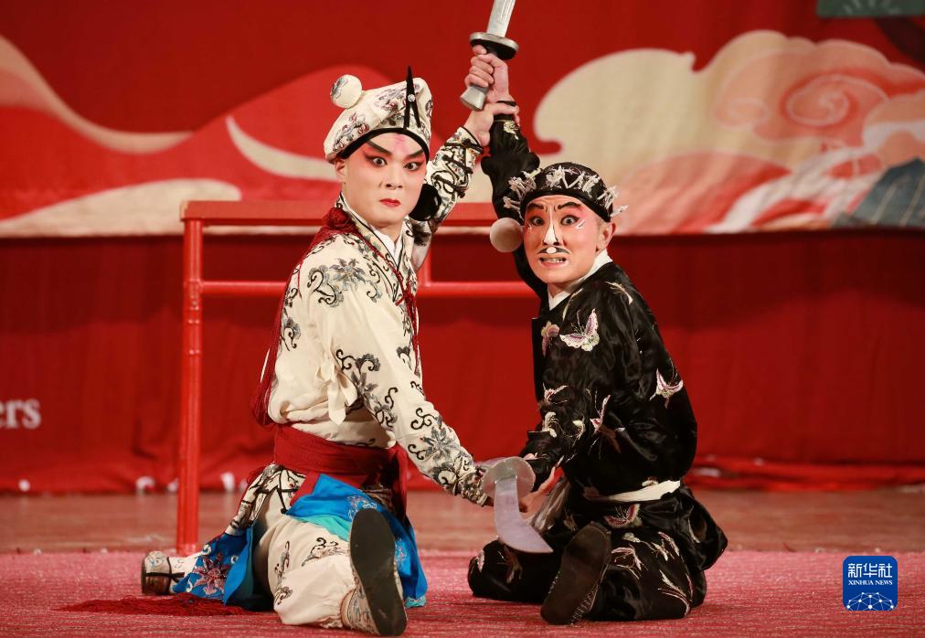 9月9日,婺劇演員在埃塞俄比亞首都亞的斯亞貝巴表演《三岔口》。