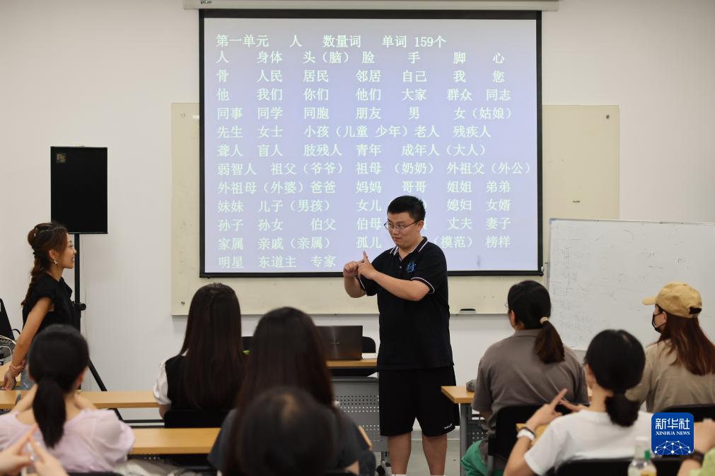9月11日,在上海市群眾藝術(shù)館,學(xué)員在手語(yǔ)課程后展示學(xué)習成果。
