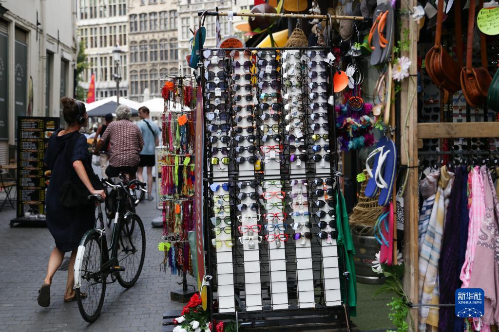 9月11日,人們經(jīng)過(guò)比利時(shí)安特衛普市中心的商店。