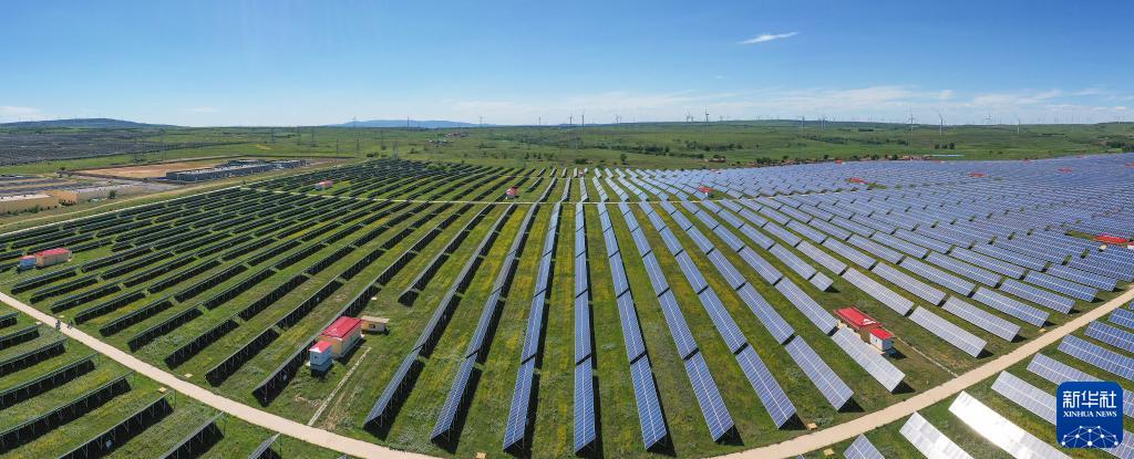 光伏板整齊排列在位于河北省張家口市的國家級可再生能源示范區內(2023年8月18日攝,無(wú)人機照片)。