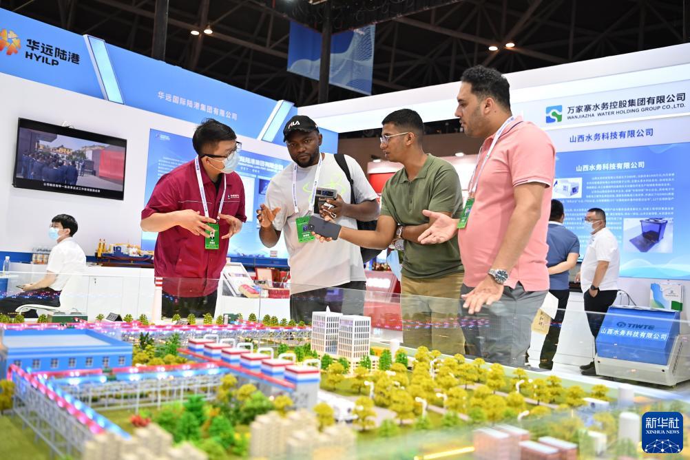 中外參展商在2022中國(太原)國際能源產(chǎn)業(yè)博覽會(huì )上交流(2022年9月2日攝)。