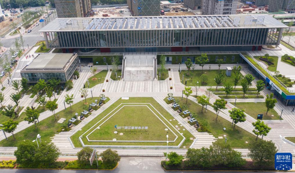 空中俯瞰浙江省長(cháng)興縣畫(huà)溪街道新能源小鎮“城市客廳”(2020年5月21日攝,無(wú)人機照片)。新能源小鎮“城市客廳”采用分布式光伏建筑一體化發(fā)電系統,年發(fā)電量達28萬(wàn)千瓦時(shí),在滿(mǎn)足建筑主體自用的前提下,多余電量還可并入電網(wǎng),產(chǎn)生“綠色收益”。