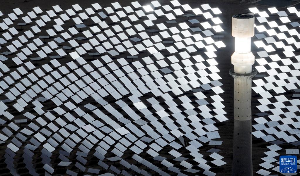 這是在青海省海西蒙古族藏族自治州格爾木市拍攝的一座光熱電站(2023年6月11日攝,無(wú)人機照片)。