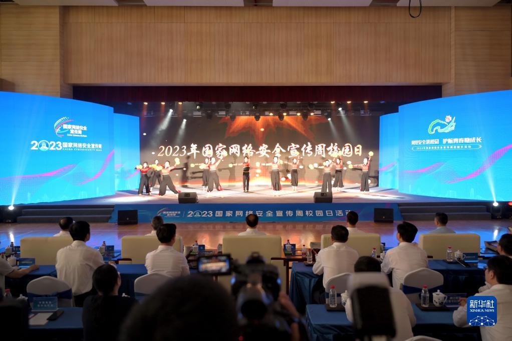 9月12日在福州第三中學(xué)拍攝的2023年國家網(wǎng)絡(luò )安全宣傳周校園日活動(dòng)啟動(dòng)儀式現場(chǎng)。