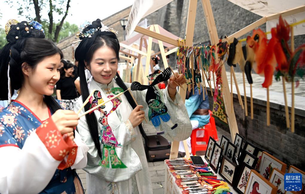 當日,陜西省西安市新城區“遇見(jiàn)城墻·非遺韻”非遺集市主題活動(dòng)在西安城墻中山門(mén)下舉辦。秦腔、華陰老腔等特色非遺節目在永興坊戲樓前輪番表演,皮影、布藝、工藝葫蘆等二十多種非遺作品在順城巷內集中亮相,豐富市民文化生活的同時(shí)也讓游客感受到陜西非遺的獨特魅力。