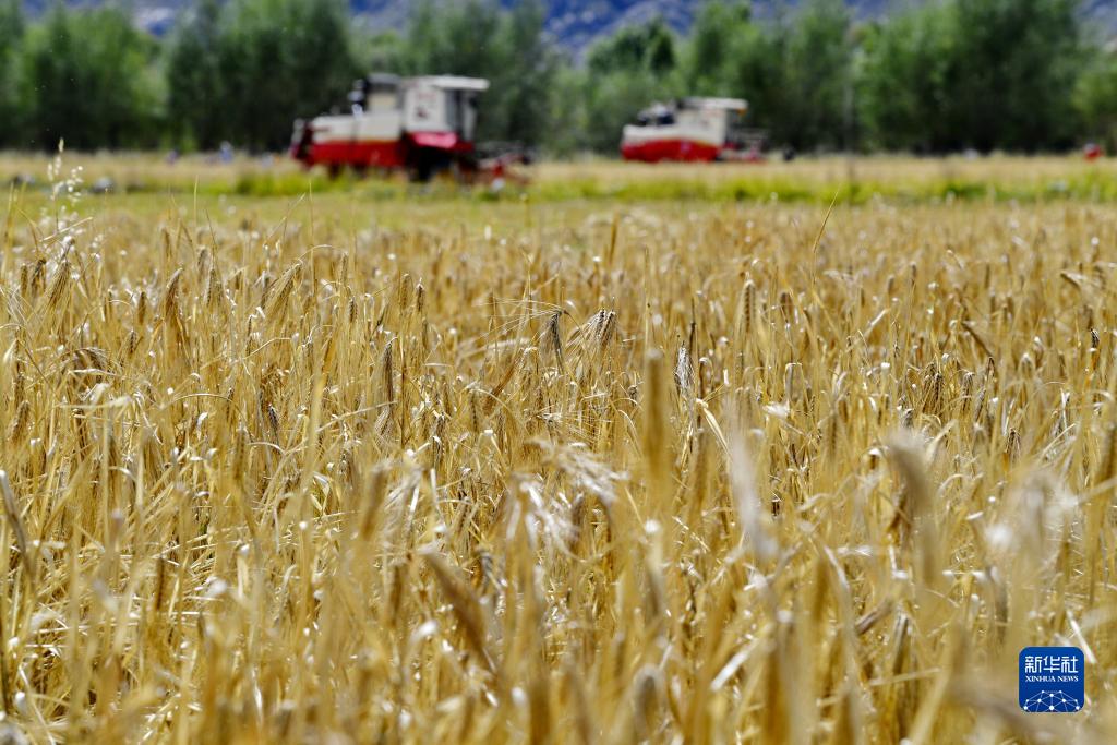 近日,西藏拉薩市曲水縣青稞成熟,人們忙著(zhù)收割青稞,感受豐收的喜悅。