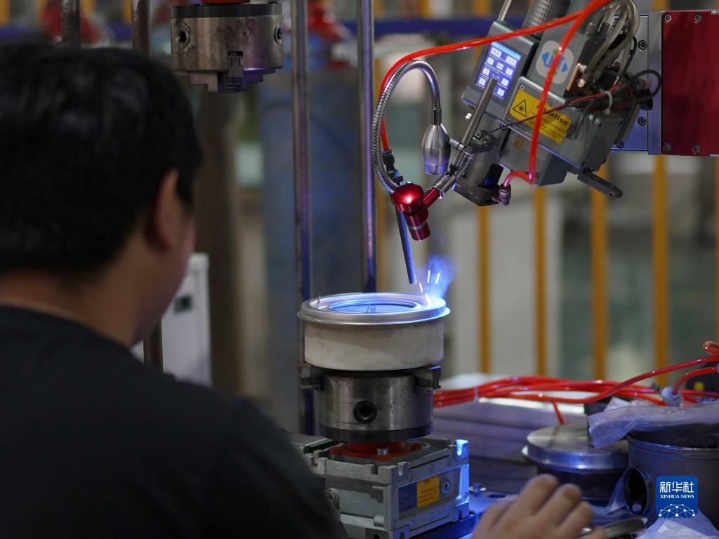 9月12日,工作人員在河北滄州立德機電有限公司生產(chǎn)車(chē)間進(jìn)行激光焊接。