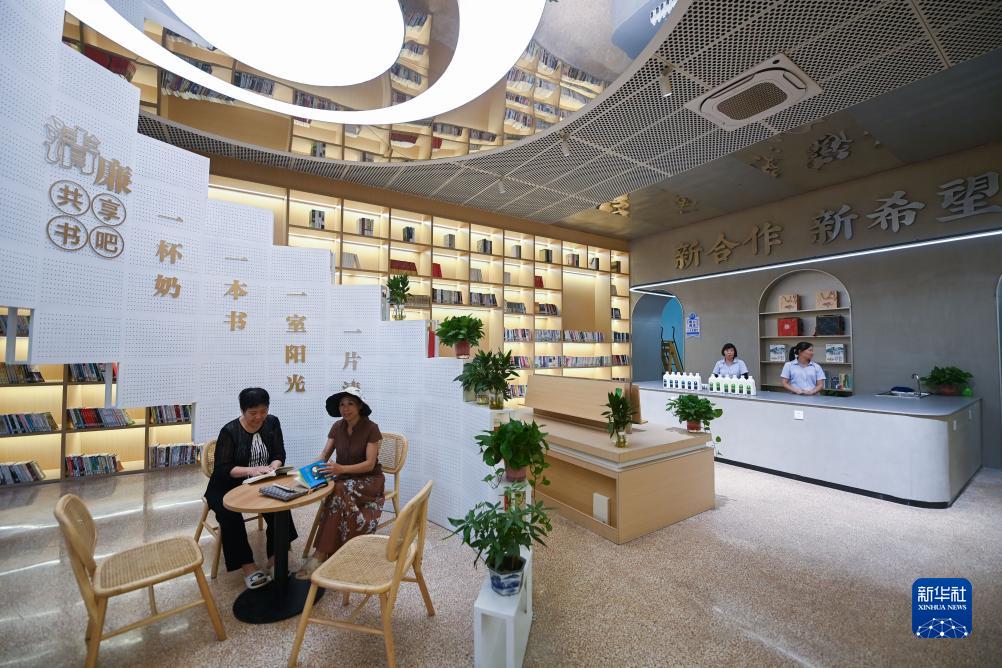 9月12日,建德市更樓街道更化社區的居民在鮮奶共富工坊的書(shū)吧內看書(shū)。