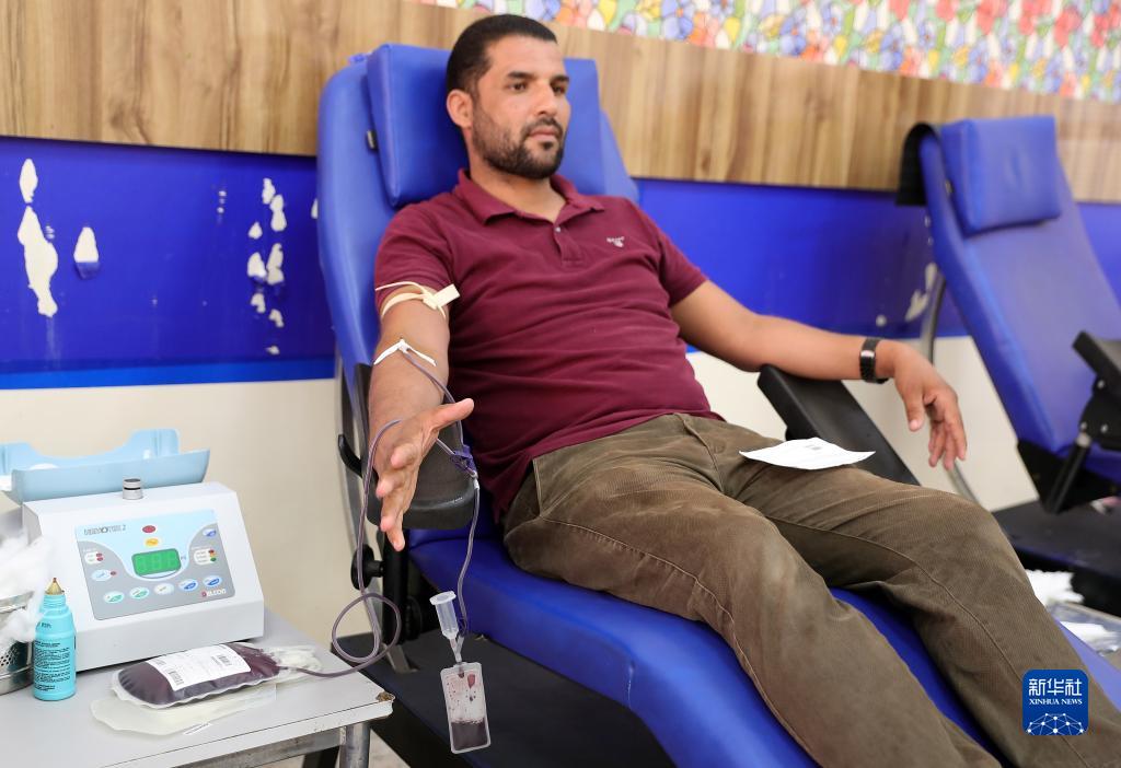 9月12日,一名男子在摩洛哥馬拉喀什一家血液捐獻中心獻血。