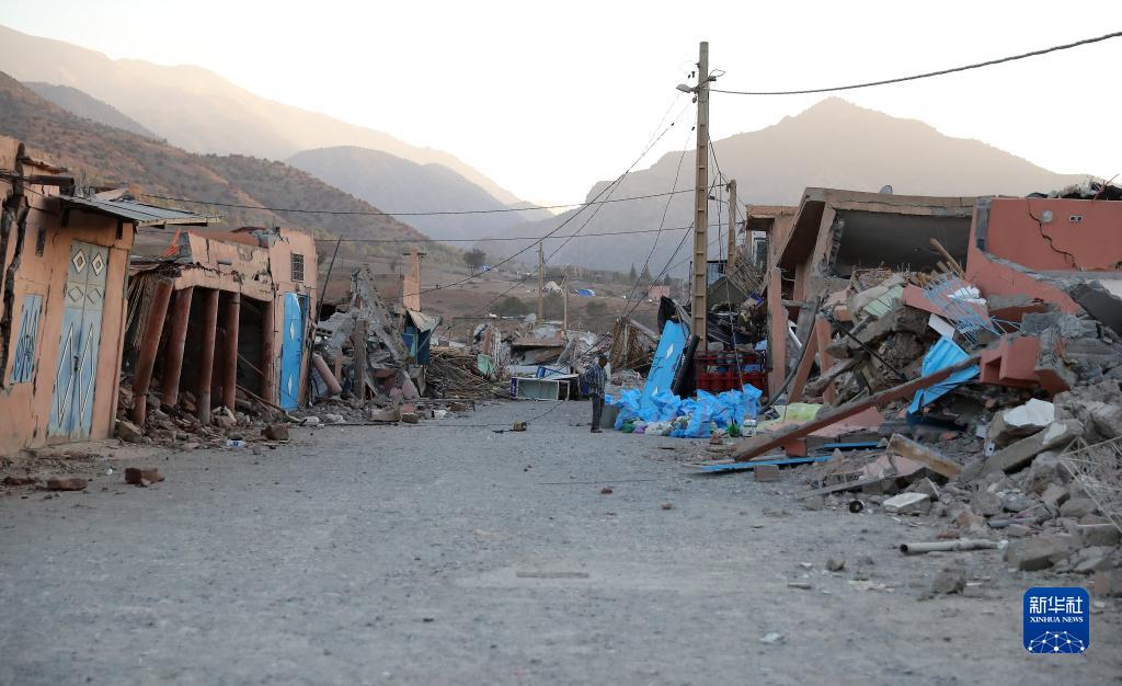 9月12日,在震中區域的摩洛哥豪茲省塔拉特恩雅庫布村,記者拍攝到大量被地震損毀建筑。