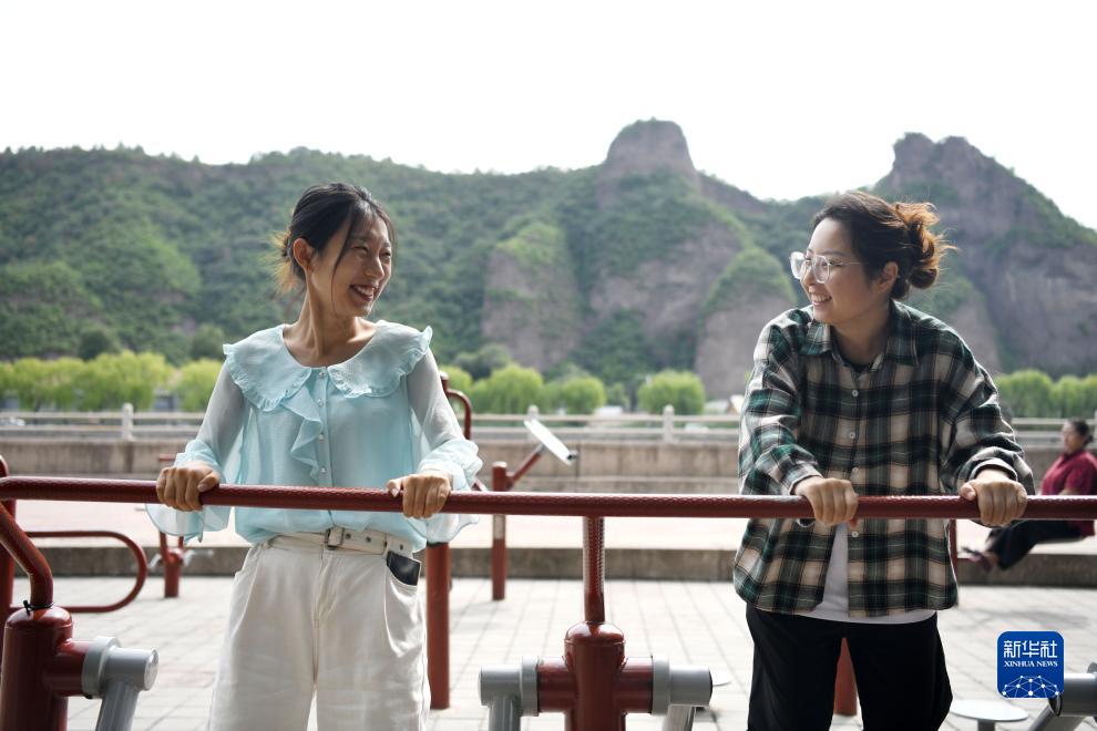 9月13日,市民在承德市雙橋區一處“口袋公園”鍛煉。