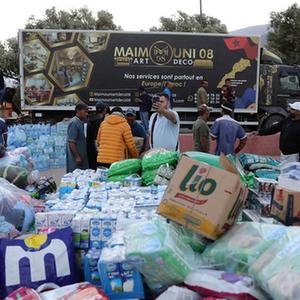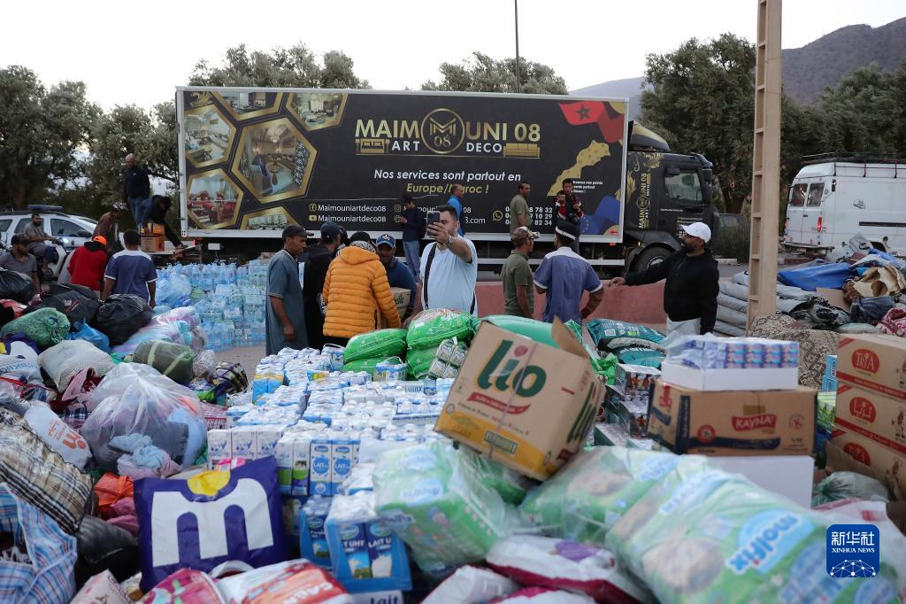 9月12日,救援物資在摩洛哥豪茲省的塔拉特恩雅庫布等待發(fā)放。