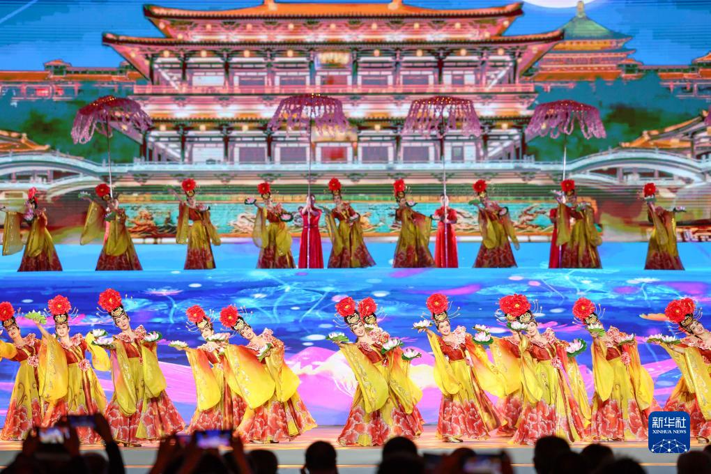 演員在表演歌舞節目《天山共明月》(9月12日攝)。