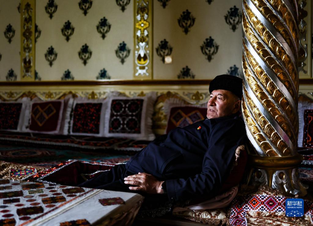 9月5日,巴依卡老人從早到晚接待了一百多名前來(lái)參觀(guān)和接受教育的客人,有些疲憊。新華社記者 蘭紅光 攝