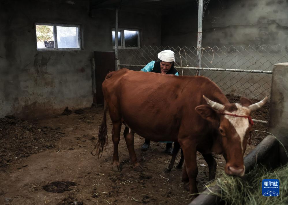 9月5日,巴依卡老人的老伴帕熱扎·加依克準備擠牛奶。新華社記者 蘭紅光 攝