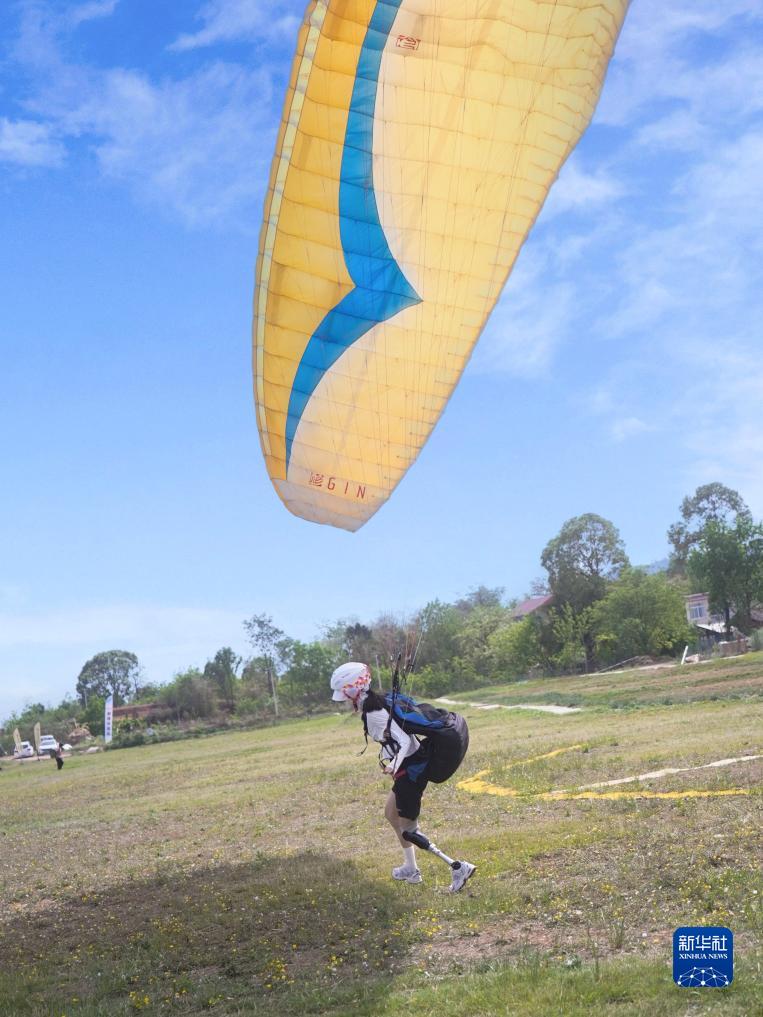 胡月在練習滑翔傘。新華社發(fā)(受訪(fǎng)者提供)