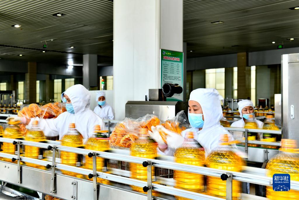 9月13日,在長(cháng)壽花食品股份有限公司玉米油生產(chǎn)線(xiàn),工作人員在流水線(xiàn)上作業(yè)。